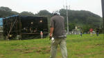 どうやら雨の影響もあって設営が遅れてるらしい。